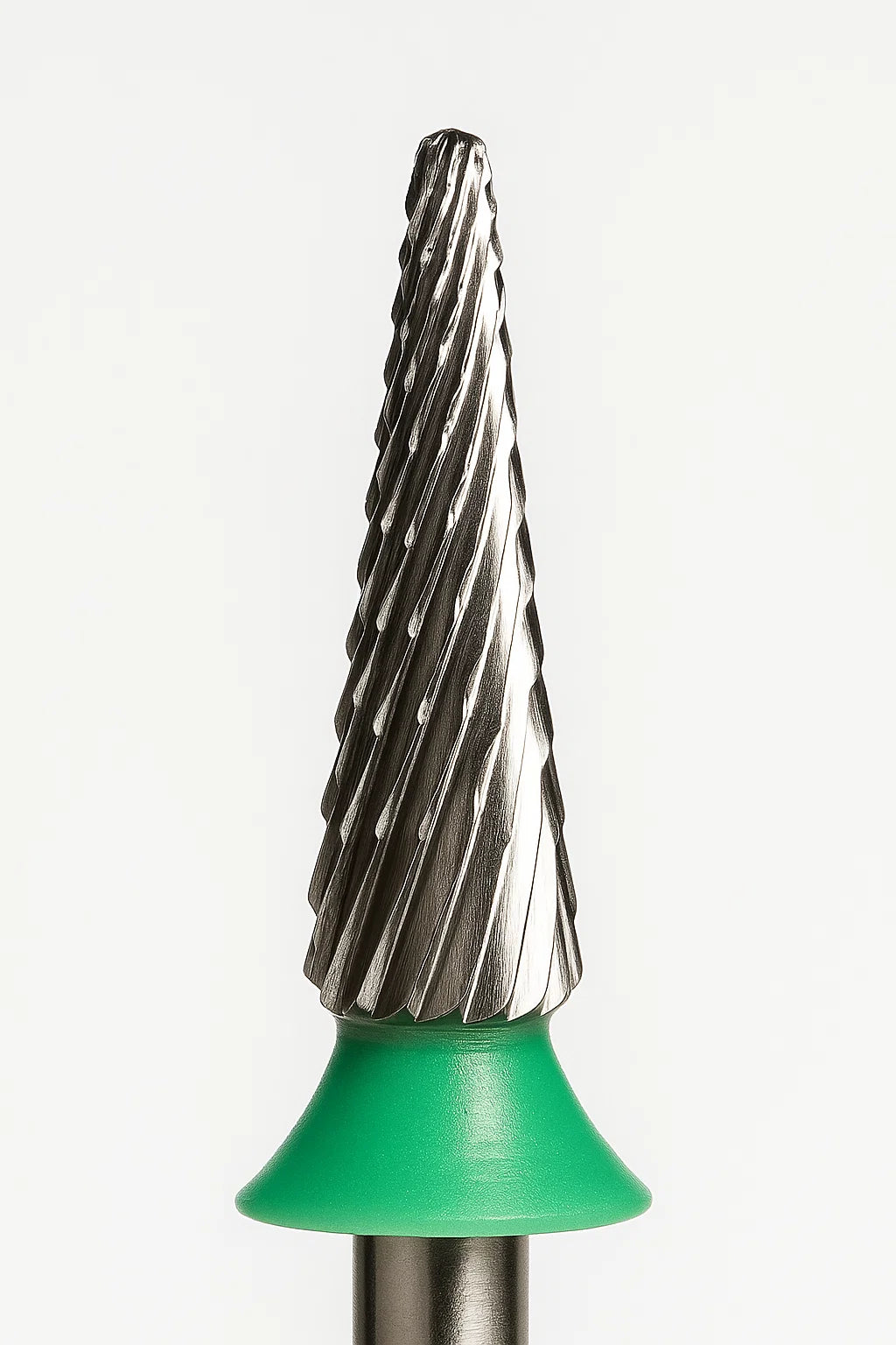 The Extra Fine Cone Blending Bit is a precision carbide tool perfect for refining product transitions and removing small imperfections. Its tapered cone shape allows you to access tricky areas around the cuticle and sidewalls, while the extra fine grit ensures a smooth, flawless surface that’s ready for top coat or nail art. Ideal for blending acrylic, gel, and acrygel overlays, this bit delivers both control and comfort, preventing damage to the natural nail.